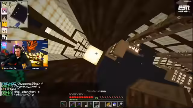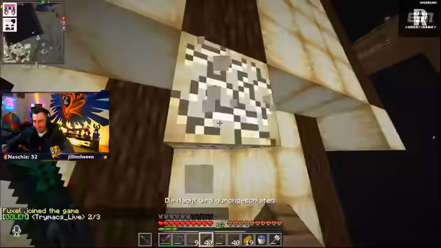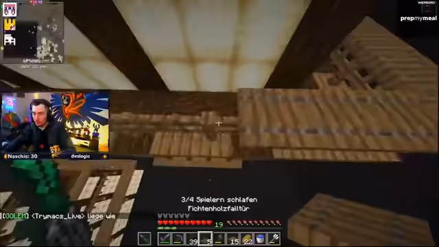 04:14:36Trimax äußert im Chat seine Frustration darüber, dass niemand schlafen geht und die Nächte unspielbar sind. Er fordert den gesamten Server auf, sein Schlafverhalten zu überdenken, da nur vier Leute zum Schlafen benötigt werden. Der Streamer nimmt dies zur Kenntnis und setzt seine Bauarbeiten fort, wobei er sich an den darunter liegenden Strukturen orientiert. Ein Clip über Nick wird erwähnt, den der Streamer lieber nicht sehen möchte, da er ahnt, dass dieser unangenehm ist. Er betont die Wichtigkeit von Nicks Anwesenheit im „Loch“ (dem Bauprojekt) und fragt, ob Eli über Nicks geplante Arbeit am nächsten Tag informiert ist. Es wird über die Fertigstellung des Projekts bis Freitag gesprochen, da dies der einzige Tag ist, an dem alle Teammitglieder anwesend sind. Der Freitag soll mit einem kleinen Event und einem Brunch gefeiert werden. Der Streamer und ein Mitspieler sind die letzten verbliebenen „Säulen“ des Projekts. Der Streamer hat sich vorgenommen, ein Haus pro Tag zu bauen, oder zwei kleine Häuser und eine Brücke. Er bemerkt, dass er noch kein kleines Haus gebaut hat und möchte sich auf Fokusarbeit konzentrieren. Kroko wird erwähnt, der League of Legends spielt, obwohl er schlafen gehen wollte. Der Streamer beschließt, sein Haus fertigzustellen und danach Rollenspiel zu betreiben. Er überarbeitet seine Bauweise und entscheidet sich für mehr Fantasie und Abwechslung bei den Abständen der Bauelemente. Er stellt fest, dass er noch lange nicht fertig ist, da noch die Außenfassade und das Dach fehlen. Es wird über die Müdigkeit gesprochen und der Wunsch geäußert, dass das Projekt bald abgeschlossen ist. Ein Mitspieler schlägt eine extreme Idee vor: den Bau einer riesigen Akaza-Statue mit einem Netherite Beacon in der Hand, was der Streamer als „todlangweiligen Grind“ ablehnt. Er schlägt stattdessen ein unscheinbares, kaputtes Haus vor, das von oben in ein verstecktes, beeindruckendes Bauwerk führt. Die Diskussion über die Größe von Akaza und die Schwierigkeit des Netherite-Grinds setzt sich fort. Der Streamer erhält eine Nachricht, dass Nick für „nette Mädchen“ arbeiten will, und beklagt den Mangel an Froglights. Er stellt fest, dass es seltsam sein wird, wieder ein normales Leben zu führen, wenn das Projekt beendet ist. Die Frage nach Mällers langen Wachzeiten wird gestellt, und es wird über die Wohnsituation und die Lautstärke beim Streamen gesprochen.