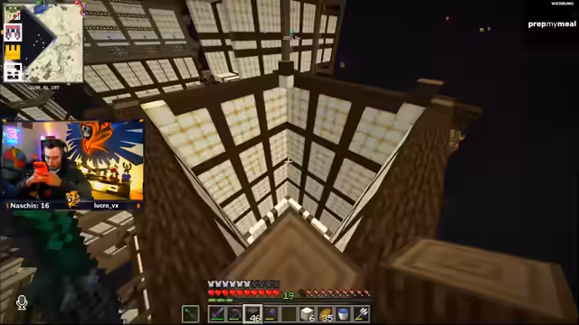 05:58:04Der Streamer feiert den Abschluss des Towers, der in etwas über fünf Stunden Bauzeit penibel und detailreich fertiggestellt wurde. Er betont, dass das Dach sorgfältig konstruiert wurde und fast bis zur Decke reicht. Er präsentiert stolz das Ergebnis und hebt hervor, dass alles per Hand und ohne Creative Mode gebaut wurde. Das Mammutgebäude, von dem er und Hanno je zwei Exemplare gebaut haben, wird als das größte Gebäude auf dem Server bezeichnet und seine Detailfülle, insbesondere mit den verschiedenen Trapdoors, gelobt. Er entfernt Froglights, die ursprünglich zur Beleuchtung dienten, um ein "cleanes" Aussehen zu erzielen und das Gebäude ohne unnötige Elemente zu präsentieren.