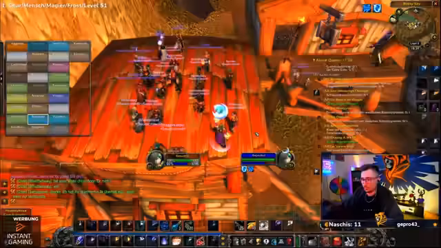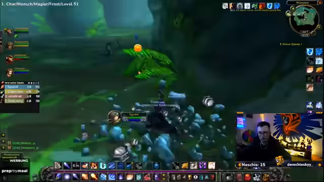 02:47:36Der Full-Run in Maraudon beginnt. Die Gruppe bewegt sich zügig durch die Instanz, konzentriert sich aber darauf, gefährlicheadds zu meiden, um einen Wipe zu vermeiden. Die Kommunikation ist entscheidend, um die Positionen zu koordinieren und den Schaden der Mobs zu managen. Es werden strategische Pfade gewählt, um bestimmte Bereiche zu umgehen und sich auf die Bosse vorzubereiten, während das Zeitmanagement wichtig bleibt, da Streamer zeitliche Engpässe hat.