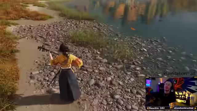 02:15:14Der Streamer setzt seine Erkundung fort, befreit einen Gefangenen und sucht nach Möglichkeiten, sein maximales Leben zu erhöhen. Er trifft auf Ainu und tauscht Gegenstände mit ihnen. Er kauft ein Stirnband und eine Maske und zieht sie sofort an. Er trifft auf einen Mönch und wird mehr oder weniger erpresst, ihm zu helfen. Er nimmt eine Aufgabe an, um einen Stein aus einem Teich zu holen, und ist gespannt auf den Buff, den er dadurch erhalten wird. Er kommentiert die Schönheit der Spielwelt und die Grafik. Er folgt einem Fuchs, der ihn zu einem Schrein führt, wo er einen Talisman erhält. Er stellt fest, dass er nur einen Talisman ausrüsten kann und wählt den, der sein maximales Leben erhöht. Er kämpft gegen Gegner und stellt fest, dass das Lager etwas zu schwer für ihn ist. Er nutzt die Umgebung zu seinem Vorteil und wirft Gegner von Klippen. Er spricht über die Physik des Spiels und die Tatsache, dass Gegner nicht durch Stürze sterben.