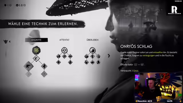 09:05:45Es werden verschiedene Pfeiltypen freigeschaltet, darunter Brand-, Gift- und Entwaffnungspfeile, die im Lager hergestellt werden können und unterschiedliche Effekte auf Gegner haben. Der Streamer freut sich über die Möglichkeit, die Pfeilkapazität zu erhöhen, was er als "geilen Scheiß" bezeichnet. Er verbessert seine Ausrüstung und Masken, wobei er besonders von einer dämonisch anmutenden Maske begeistert ist. Der Charakter trinkt Sake mit einem Samurai und wählt eine Maske, um seine inneren Dämonen in Schach zu halten. Es wird überlegt, wie man die Rüstung verbessern kann, da der letzte Kampf zu knapp war. Das Spiel wird als Platin-Game bezeichnet, das Spaß macht, auch wenn man es mehrmals durchspielen muss. Der Streamer genießt das Kämpfen und Schleichen im Spiel und findet, dass der Bogen gut ausbalanciert ist. Er kommentiert die Grafik und das Design des Spiels, insbesondere die Masken und Rüstungen, die er als cool und böse empfindet.