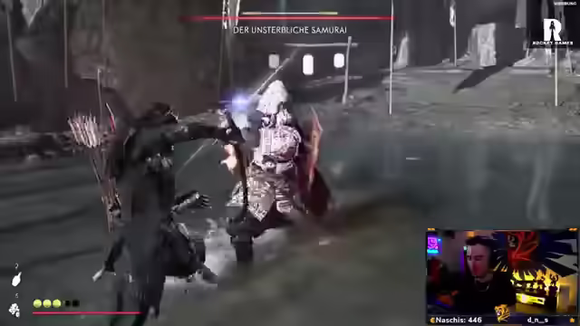 02:33:36Der Streamer lobt das immersive Controller-Feedback des Spiels, das verschiedene Vibrationen für Schritte, Treffer und erlittene Schäden bietet. Er empfiehlt, die Vibration bei Story-Games nicht auszuschalten. Er wirft ein Schwert auf einen Gegner und kommentiert, wie gut es in dem Ziel steckt. Er bedankt sich bei Zuschauern für ihre Unterstützung und beantwortet Fragen zum Spiel. Er erklärt, dass das Spiel grafisch und atmosphärisch auf höchstem Niveau ist, das Gameplay flüssig ist und der Soundtrack perfekt passt. Er erwähnt, dass er das Spiel vorbestellt hat und dass es ein echtes PS5-Game ist. Er findet einen Bogen und erklärt die Unterschiede zwischen den verschiedenen Bogentypen. Er greift einen Schmied an, der für Fürst Saito arbeitet, und erfährt mehr über die JT6. Er nimmt eine Aufgabe an, um einem Nachbarn zu helfen, und macht sich auf den Weg, einen Stein aus einem Teich zu holen. Er entdeckt einen Fuchsbau und erhält ein Geschenk von einem Feini.