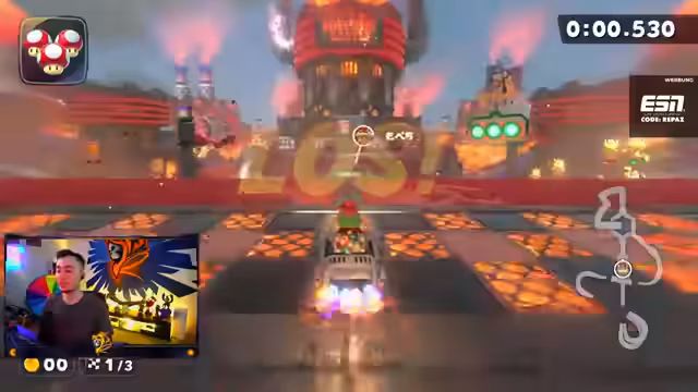 00:12:02Der Fokus liegt auf dem Verschieden, spezielle und schwierige Abkürzungen im Mario-Kart-Kurs zu meistern. Eine besonders harte Abkürzung erfordert präzises Springen an einer Wand und Stunts. Der Streamer findet es anfangs schwer zu verstehen, wie die Abkürzung funktioniert, und gibt mehrere erfolglose Versuche. Der Chat gibt ihm Hinweise, die ihm langsam helfen, die Technik zu verstehen und schließlich erfolgreich umzusetzen.