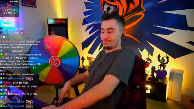 00:55:56Der Streamer interagiert intensiv mit dem Chat und führt sein 'Scam-Rad' ein, bei dem Zuschauer durch Spenden die Möglichkeit bekommen, am Rad zu drehen. Die Ergebnisse variieren zwischen 'sprechen Englisch' für einige Minuten und dem Erlangen eines VIP-Status für einen Monat. Dies führt zu humorvollen und manchmal frustrierenden Momenten, insbesondere wenn das Rad fast wieder auf Englisch landet.