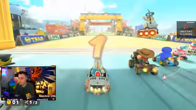 02:42:54Der Streamer wechselt zum Battle Royale Modus in Mario Kart. Das Ziel ist es, in den Top 4 zu landen, um Punkte zu sammeln. Die Runden sind chaotisch und voller Item-Duelle. Er versucht, mit strategischem Einsatz von Items wie Schutzschilden und Pilzen zu überleben. Er äußert den Wunsch, in einem Online-Turnier gut abzuschneiden, und erwähnt den Promo-Code 'Rechas' für den Händler ESM, um Rabatte zu erhalten.