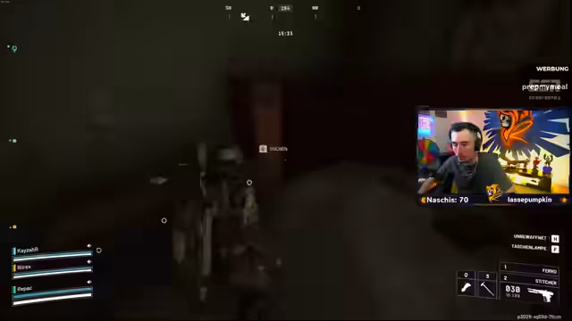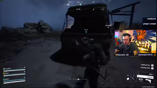 08:01:13Am Ende der Runde versuchen die Spieler, zum Extraktionspunkt zu gelangen. Die Situation ist angespannt, da Gegner in der Nähe lauern. Der Streamer ist in einer prekären Position mit nur noch einem Schild und wenig Gesundheitspunkten. Er beschreibt die Dringlichkeit und die Taktiken, die er anwendet, um zu überleben. Obwohl das Team es bis zum Extrakt schafft, verliert es durch einen Bug oder ein Problem mit der Extraktions-Timer knapp und verpasst den Ausstieg.