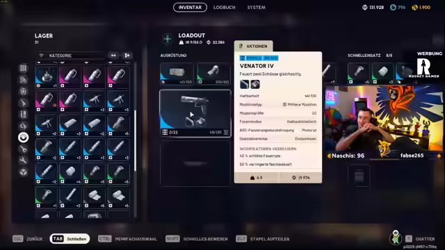 09:03:13Nach einem besonders erfolgreichen Loot-Zug steht der Streamer vor dem Problem eines völlig überfüllten Inventars. Er beginnt damit, seine gesammelten Gegenstände, darunter seltene Waffen und Komponenten, strategisch zu verkaufen, um Platz für neue Ausrüstung zu schaffen. Dieses Prozess ist zeitaufwendig und erfordert eine genaue Planung, welche Gegenstände behalten und welche abgestoßen werden sollen.