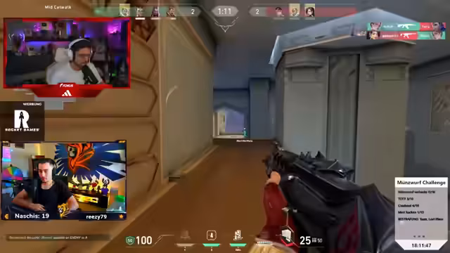 04:02:17Der Fokus liegt auf einem Live-Spiel von Valorant, bei dem der Streamer und sein Team versuchen, eine Herausforderung zu meistern. Es werden taktische Anweisungen gegeben und über die aktuelle Spielsituation diskutiert. Der Streamer betont die Wichtigkeit von Kommunikation im Team und fordert mehr Aggressivität. Es gibt auch humoristische Äußerungen über Konkurrenz-Streamer, die arbeitslos würden, falls sie nicht mehr von dessen Content abhängig wären. Das Ziel ist ein Back-to-Back-Sieg gefolgt vom Gewinn der Münze.