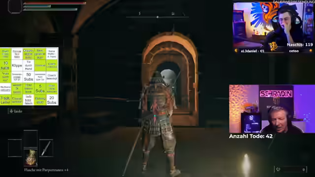 Elden Ring-Session mit Fokus auf DLC-Inhalte und Zuschauerinteraktion