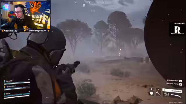 01:02:12Während des Spiels treten erhebliche Serverprobleme in Arc Raiders auf, was den Streamer sehr frustriert. Es werden koordinierte Tode gefahren, um die Lobby zu wechseln, und es werden Waffenausrüstungen für den bevorstehenden Bosskampf vorbereitet. Die Renegade-Waffe wird als sehr effektiv eingestuft. Parallel wird über den aktuellen Stand des Call of Duty-Franchises gesprochen, das als 'tot' betrachtet wird, und die Hoffnung auf eine Wende mit dem kommenden MW4 geäußert.