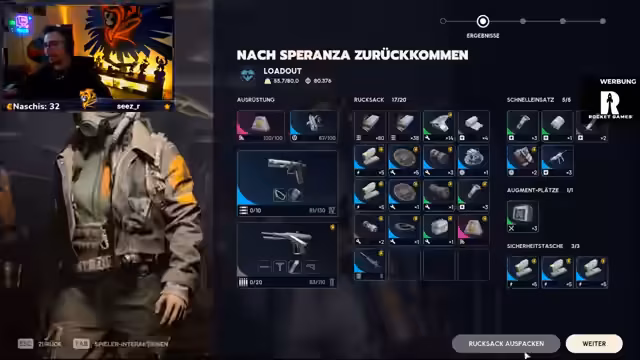 03:30:00Die Spieler bereiten ihre Ausrüstung für den finalen Bosskampf vor. Streamer wählen spezialisierte Waffen wie die Vanator und die Renegade, um Schaden zu maximieren. Es werden Defibrillatoren, Schild-Auflader und Munition mitgenommen. Die Strategie konzentriert sich darauf, die Schwachstellen der Königin gezielt anzugreifen und Deckung zu suchen, während ihre gefährlichen Laser- und Raketenangriffe ausgewichen werden.