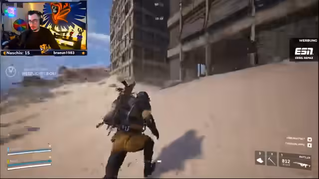 00:48:37Nach einigen technischen Verzögerungen starten beide in Arc Raiders. Der Streamer erklärt die Notwendigkeit, in PvE-Lobbys zu kommen, um später große Bosskämpfe im Trio zu machen. Da dies jedoch nicht direkt möglich ist, beschließen sie, sich gegenseitig zu töten, um das PvP-Feedback abzugeben und in freundlichere Lobbys zu kommen. Während des Farmens werden strategische Fragen zu Schildreparatur, dem Recycling von kaputten Schilden und der Farmung von Akkus und Ark-Schaltkreisen besprochen, um den Spielfortschritt zu optimieren.