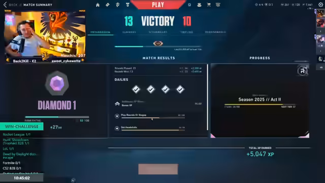 04:30:53Die Streamer definieren ihre Spielphilosophie für die Win-Challenge: Der Sieg hat oberste Priorität, auch wenn es bedeutet, den Teamkollegen zu opfern oder unfaire Taktiken zu nutzen. Diese Haltung führt zu internen Spannungen, da sie das Prinzip des 'fairen Spielens' infrage stellt. Nach dem Gewinn eines Spiels wechseln sie das Genre und spielen Valorant, wobei sie hohe Ambitionen für den nächsten Sieg äußern, trotz technischer Probleme mit dem Voice-Chat.