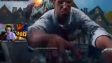 01:49:02Nach Abschluss aller vorbereitenden Schritte steht der Bossfight gegen einen T-Rex an. Der Streamer geht komplett ungespoilert in den Kampf und bereitet sich mit Juggernaut und 'Max Ammo'-Kaugummi vor. Während des Kampfes stellt er fest, dass es sich entgegen der Gerüchte nicht um den einfachsten Bossfight handelt. Es fallen sehr wenige Platten, die zur Schadensreduktion des Bosses notwendig sind, was den Kampf schwierig macht. Nach dem Sieg über den Boss werden die zwei verbleibenden Portale aktiviert, was das Easter Egg erfolgreich abschließt.