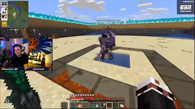05:13:44Nach den erfolgreichen Duellen lobt der Streamer die Spieler für ihre Leistungen und schätzt, dass sie 80 bis 90 Prozent der anderen Spieler auf dem Server besiegen könnten. Es wird der Wunsch geäußert, weitere Faustkämpfe zwischen 'Rose' und 'Medi' zu sehen. Während der Vorbereitung kommt es zu Soundproblemen beim Streamer, die als Minecraft-Bug identifiziert werden. Trotz der technischen Schwierigkeiten geht der Stream weiter. Es wird eine weitere Runde Faustkampf zwischen 'Rosemondi' und einem 'marokkanischen Prinzen' angekündigt, die ebenfalls sehr ausgeglichen ist und in einem 'Golden Goal' entschieden wird.