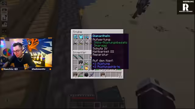 00:01:08Der Stream beginnt mit einer hitzigen Diskussion über eine gestohlene Diamantrüstung. Ein Spieler, dessen Diamantsachen aus einer Truhe bei der Arena entwendet wurden, fordert deren Rückgabe. Er erklärt, dass er die vollständige Rüstung für geplante Kämpfe in der Arena benötigt. Die anderen Spieler bestreiten den Diebstahl und behaupten, lediglich Teile der Rüstung getauscht oder ausgeliehen zu haben, um sie zu verzaubern. Die Situation eskaliert, da der Bestohlene die Rüstung sofort benötigt und die anderen Spieler sich weigern, sie zurückzugeben, da sie sich weit entfernt auf einer Reise befinden. Es wird vorgeschlagen, die Rüstung zu reparieren, was jedoch als aufwendig und zeitraubend abgelehnt wird, da der Spieler die Rüstung sofort benötigt.