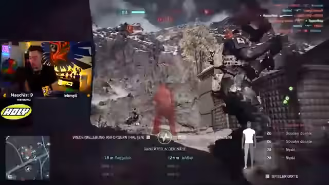 02:35:12Nach einer persönlichen Anekdote über YouTube kehrt der Streamer zum Spielen zurück. Der Kampf ist weiterhin hart geprägt von hohem Druck und Koordinationsproblemen. Der Streamer gibt ständig Hilferufe ab, insbesondere nach einem Medic, während er unter Sniper-Feuer leidet. Auch seine Teamkollegen sind betroffen, was eine chaotische und desorganisierte Situation in der Mannschaft widerspiegelt und den Versuch einer unkoordinierten Flanke zeigt.