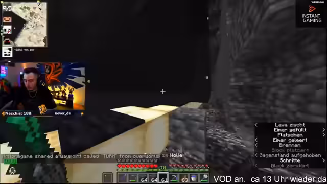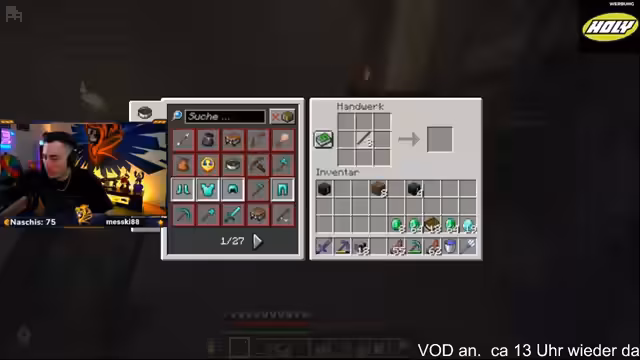 14:01:01Eine unerwartete Unterbrechung führt zu einer 'Hosen-Quest'. Das Team stellt fest, dass wichtige 'Huschen'-Hosen fehlen, die für die effiziente Bewegung im Nether benötigt werden. Da die eigene Vorräte aufgebraucht sind, wird im Team gebeten, diese weiterzugeben oder zu farmen. Diese Aktion wird als dringende Angelegenheit dargestellt, da sie die Arbeitsgeschwindigkeit und die Sicherheit im anstrengenden Nether-Umfeld maßgeblich beeinflusst. Es kommt sogar zu einem humorvollen Tausch von Ausrüstung und das Team zeigt sich solidarisch.