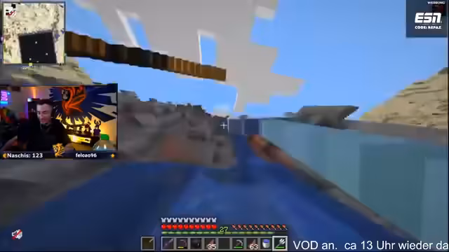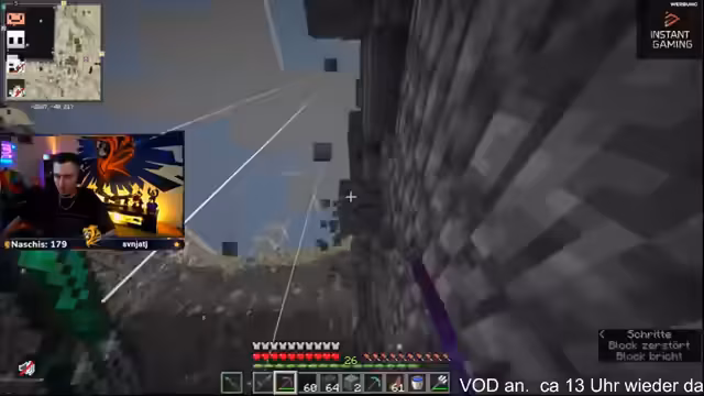 00:04:03Nach langer Offline-Zeit startet der Stream mit dem Problem, dass niemand auf dem Server ist. Der Streamer, der sieben Stunden AFK war, ist erleichtert, nicht ausgeloggt worden zu sein. Gestendete AFK-Probleme der Teammitglieder und der akute Mangel an Zintenfischen, die für die Glasproduktion benötigt werden, dominieren die Anfangsphase. Es wird ein ruhiger Abend geplant, mit dem Fokus auf das Platzieren von Blöcken und die fortlaufende Ressourcensammlung.