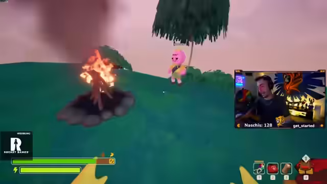 04:41:16Nach der Einweisung beginnen Schradin und der Streamer das eigentliche Gameplay. Sie klettern, sammeln Kokosnüsse und Energiegetränke, um Ausdauer zu tanken. Dabei müssen sie Fallen, giftige Pflanzen und aufsteigenden Nebel vermeiden. Die Herausforderungen wachsen, besonders im zweiten Level, wo der Regen das Klettern erschwert und der Einsatz von Teamwork noch wichtiger wird, um das Ziel zu erreichen.
