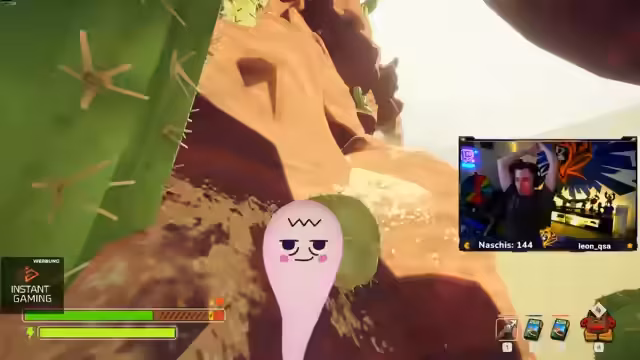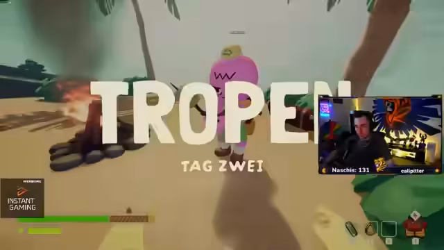 09:08:44Die Streamer beginnen in einer extrem unwirtlichen Wüstenumgebung, die geprägt ist durch Sauerstoffmangel, Hitze und Panikattacken. Ihre primäre Aufgabe ist es, Nahrung zu finden, um zu überleben. Nach anfänglicher Verwirrung entdecken sie Kokosnüsse, die als lebenswichtiges Nahrungsmittel dienen. Es kommt zu einem hektischen Austausch von Rucksäcken und Vorräten, wobei beide Spieler versuchen, die Ressourcen effizient zu verteilen, während sie permanent unter Stress und Hektik leiden.
