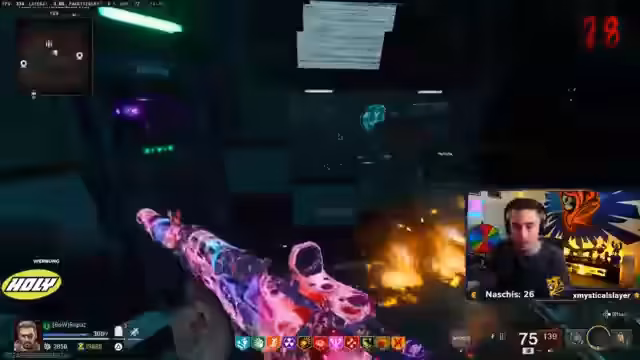 02:40:00Nach Abschluss des Easter Eggs wird eine cineastische Cutscene abgespielt. Diese zeigt eine crew, die optisch anders als die bekannte Primis-Crew wirkt. In der Szene sind Nikolai, Takeo, Richtofen und Dempsey zu sehen, die als 'die OG-Crew' bezeichnet werden. Die Geschichte gilt damit als abgeschlossen und der Streamer zeigt sich begeistert von dem 'Happy End' für die Charaktere. Als Belohnung werden Bonuspunkte und eine besondere 'Reckoning'-Visitenkarte vergeben.
