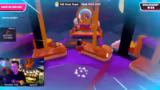 05:17:05Nachdem das Team eine Runde überstanden hat, muss es ein finales Minispiel absolvieren, um ins Halbfinale einzuziehen. Das Spiel besteht darin, auf einer schiefen Ebene rutschen und durch Ringe hindurchspringen zu müssen, um Punkte zu sammeln. Der Streamer gibt taktische Hinweise, sich nur auf die Ringe zu konzentrieren und nicht direkt auf das Ziel zu zielen. Trotz dieses Versuchs scheitern sie am Minispiel und werfen erneut eine Münze. Die Enttäuschung über dieses 'unkonventionelle' und 'kranke' Turnierformat ist dominant, da der Faktor Glück die Leistungsfähigkeit der Spieler überschattet.