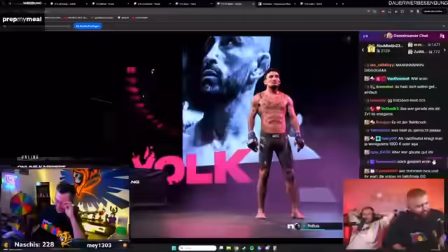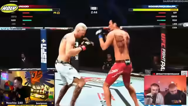 06:51:08Nach den Runden in Fall Guys wechselt das Turnier zu den UFC-Kämpfen. Allerdings treten hier erhebliche organisatorische Probleme zutage. Ein Spieler, Chef, scheint sein Game nicht installiert zu haben und benötigt fast eine Stunde für den Download. Der Streamer äußert sich darüber empört und hält es für unprofessionell, dass Spieler nicht vorbereitet sind und andere auf sie warten müssen. Gleichzeitig wird über den Aufbau der Kämpfe und mögliche Coaches diskutiert.