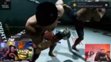 06:58:55Die UFC-Kämpfe beginnen mit einem Sparring zwischen den Spielern Amar und Erzin. Der Streamer agiert hier als Coach und gibt Tipps zwischen den Runden. Die Kämpfe sind vorsichtig und taktisch geprägt, wobei die Ausdauer der Fighter eine entscheidende Rolle spielt. Die Zuschauer erleben die Spannung des Best-of-Three-Duells und die strategischen Anpassungen, wie z.B. der Einsatz von Jabs und Kicks, live mit.