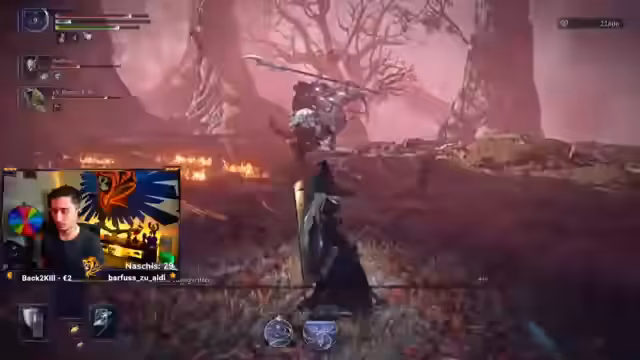 00:26:55Während des Streams wird ein besonders schwieriges World Event ausgelöst, bei dem ein 'Nightlord' als Boss erscheint. Dieser Boss gilt als extrem stark und forciert einen 'Fluch', der den Spielern 35.000 Runen kostet, um ihn zu besiegen. Das Team, dem die Runen fehlen, unterliegt dem Boss schnell und das Event endet für die Streamer katastrophal. Das wird als 'Worst World Event Ever' bezeichnet und führt zu einem scharfen Kommentar des Streamers über den Schwierigkeitsgrad und die Design-Entscheidungen des Spiels.