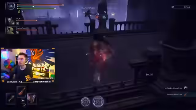 10:42:39Nach dem Erreichen der Platin konzentriert sich der Streamer auf die storybezigten Echos. Er tötet den 'Schmelztiegelritter', was den Fortschritt in der Questline des 'Executors' vorantreibt. Im Anschluss daran beginnt er eine neue Quest, die das Finden eines 'goldenen Sprösslings' als Ziel hat. Er erwähnt, dass die Quests oft nicht klar genug erklärt sind und man auf externe Guides angewiesen ist, um die richtigen Bosse im richtigen Moment zu besiegen.