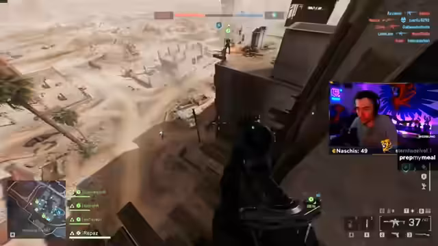 05:14:19Der Streamer wechselt die Taktik und versucht es als Sniper. Dies erfordert die Erkundung der Map, insbesondere großer Türme und Strukturen. Ein langes, gefährliches Klettern bis an die Spitze eines Turms endet abrupt mit dem Tod durch eine Claymore, was als extrem frustrierend beschrieben wird. Die Map selbst wird als "iconic" aber nicht wirklich "geil" bewertet und wird mit Battlefield 3 verglichen. Der Versuch, einen perfekten Sniper-Spot zu finden, scheitert an der Unerwartbarkeit des Gegners.
