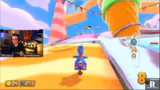 03:36:10Das Team hat Matchpoint und die letzte Runde beginnt. Die Map ist zufällig gewählt. Der Streamer ist auf Position eins und fährt eine unbekannte Map. Das Team muss ein Mittelfeld aufbauen und Danny attackieren. Das Rennen ist sehr knapp und der Streamer ist auf Position zwei. Das Team gewinnt das Rennen und den Cup.