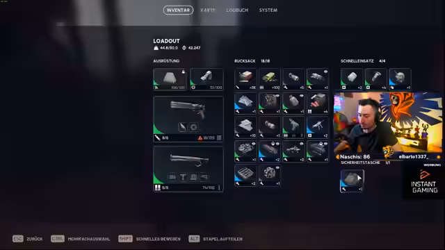 06:48:59Der Streamer bereitet sich auf drei weitere Runden in Stella Montes vor, einer PvP-lastigen Karte, die als 'gruseligste Map' beschrieben wird. Er hat eine 'Runde 100' erfolgreich abgeschlossen und ist zufrieden mit dem Ergebnis. Die Suche nach bestimmten Gegenständen wie 'Hatchkies' und 'Feuerballbrennern' wird fortgesetzt. Das Inventar ist voll, und er muss entscheiden, welche Gegenstände er behält und welche er verkauft. Er entdeckt, dass er die Fähigkeit zum Herstellen von Gegenständen während einer Runde freischalten kann, was er bisher nicht wusste. Die Ausdauerregeneration wird erhöht, wenn man unter dem Effekt einer Heilung steht, was als nützlich erachtet wird. Das Problem des vollen Inventars und die Notwendigkeit, Gegenstände zu recyceln, um Stromkabel oder elektrische Komponenten zu erhalten, wird diskutiert, wobei er die umständliche Methode kritisiert.