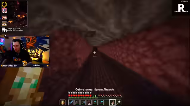 07:18:39Die Streamer befinden sich in einer Höhle, die zu einem Deep Dark führt, und sind auf der Suche nach Fortune für ihre Spitzhacken. Es stellt sich heraus, dass einer der Streamer Fortune bereits besitzt. Der Plan für den Nether wird konkretisiert: Ein Streamer wird sich auf das Sammeln von Materialien für einen Beacon konzentrieren, während der andere Netherite farmen möchte. Es wird diskutiert, ob genügend Blöcke für einen vollen Beacon vorhanden sind, wobei einer der Streamer angibt, etwa 30-40 Blöcke zu besitzen. Die Zeit im Nether ist auf anderthalb Stunden begrenzt, aber es wird angedeutet, dass einige länger bleiben könnten. Die Streamer überlegen, wie sie effizient im Nether vorankommen können, und es wird erwähnt, dass man Raketen craften kann, um damit zu fliegen. Trotz der bevorstehenden Reise in den Nether gibt es Probleme mit der Ausrüstung, insbesondere mit fehlendem Essen, was zu einer kurzfristigen Suche nach Nahrung führt. Die Vorbereitungen laufen auf Hochtouren, um optimal für den Nether gerüstet zu sein.