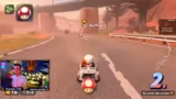 06:35:31Das Gameplay ist von strategischem Denken und schnellen Reaktionen geprägt. Der Streamer analysiert die Rennsituation, wobei er sich für eine defensive Haltung entscheidet und eine Blume wählt, um sich abzusichern. Gleichzeitig plant er Angriffe von hinten. Die hektischen Manöver und der Druck durch andere Spieler führen zu gefährlichen und knappen Situationen, in denen er seine Items und Streckenkenntnisse einsetzt, um seine Position zu halten oder zu verbessern.