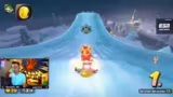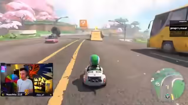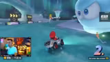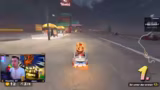 01:01:08Der Fokus verlagert sich auf die Battle-Royale-Modus. Der Streamer kämpft hartnäckig um hohe Platzierungen und nutzt dabei geschickt Items und Abkürzungen, um seine Punkte zu maximieren. Er ist bei mehreren Runden sehr nah am Sieg, wird aber häufiger Opfer von Blau-Schalen und Angriffen. Trotzdem gelingt es ihm, Top-Platzierungen zu erreichen und eine Punkte-Streak aufzubauen, was die Gesamtperformance stark verbessert.