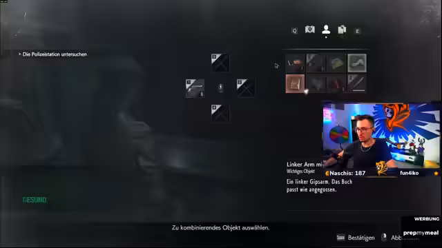 00:49:59Der Streamer erkundet detailliert die Polizeistation, deren Karte unbesuchte Bereiche rot markiert. Er stößt auf Safe-Rooms, die zur Erholung dienen, und stellt fest, dass Munition in diesem Spiel sehr kostbar ist. Bei Kämpfen mit den Zombies bemerkt er, dass diese nach dem Tod oft wieder aufstehen können, wenn der Kopf nicht zerstört wird. Dies zwingt zu strategischem Vorgehen und sparsamem Umgang mit Ressourcen. Er kombiniert Kräuter und stellt Munition her, während er weiter nach Marvin sucht und die ersten Schlüssel für neue Areale findet.
