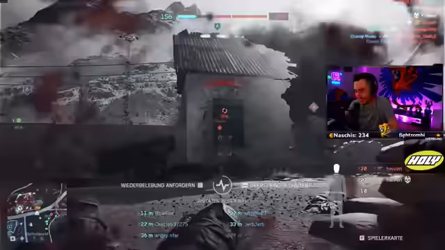 02:33:55Zu Beginn des Streams bemerkt der Streamer Veränderungen im Gameplay, insbesondere bei der Punkte-Einnahme, und ist von der neuen Dragon-Funktion begeistert. Er plant, mit einem Spieler namens Sam zu kooperieren, die er als exzellenten Medic mit guter Versorgungsfähigkeit beschreibt. Das Gameplay ist bereits actiongeladen, und der Streamer hat Schwierigkeiten, sein Charakter zu heilen, wobei er auf einen vermuteten Beinbruch verweist.