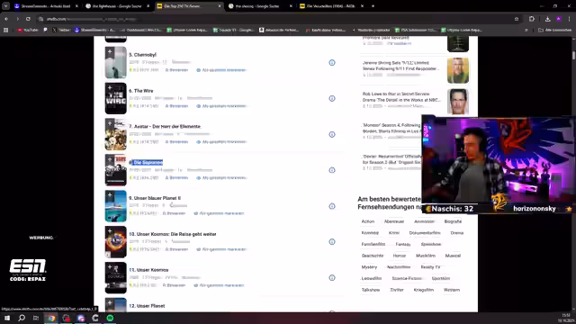 00:29:48Nach der kritischen Serie-Analyse gibt es eine lange Ausführung über Film- und Serienempfehlungen. 'Demon Slayer' wird wegen der hochwertigen deutschen Synchronisation gelobt, selbst für Nebencharaktere wurden teure Synchronsprecher engagiert. HBO-Serien wie 'Tschernobyl' (9,3 IMDB) und 'The Batman' mit Robert Pattinson werden als absolute Highlights gepriesen. Der Streamer stellt fest, dass alte Filme oft besser bewertet sind und nennt 'Schindlers Liste' und 'Die Verurteilten' als Beispiele.