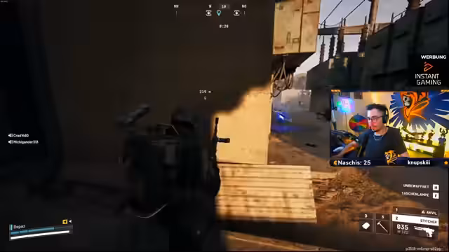 02:10:00Während des Spiels sichtet der Streamer einen feindlichen Spieler, der sich verdächtig verhält. Er ist unsicher, ob der Spieler ihn gespotted hat, und beschließt, vorsichtig zu agieren. Er versucht, die Position des Gegners ausfindig zu machen, wird jedoch durch laute Geräusche auf sich aufmerksam. Die Situation bleibt angespannt, und der Streamer erwägt einen Rückzug oder einen direkten Angriff.