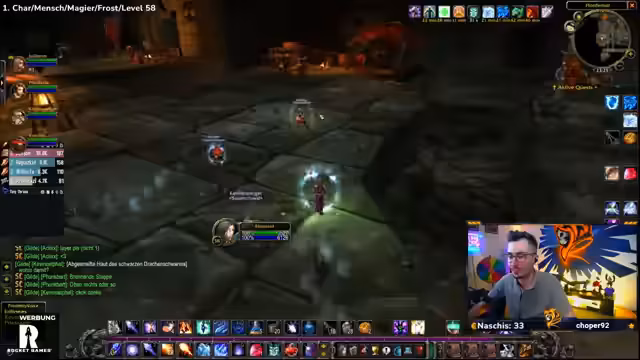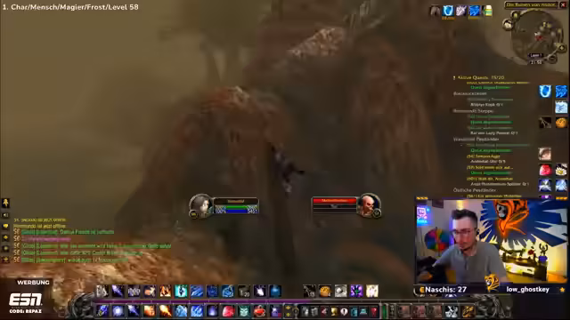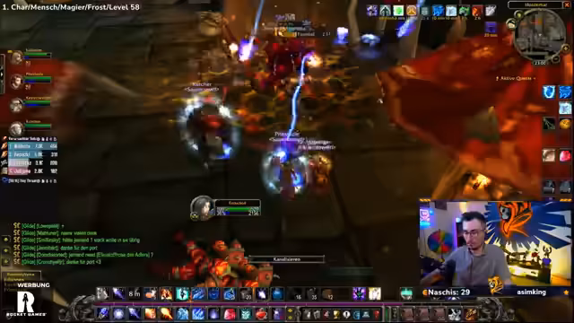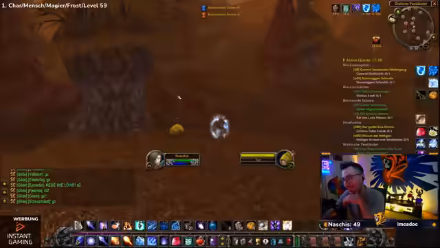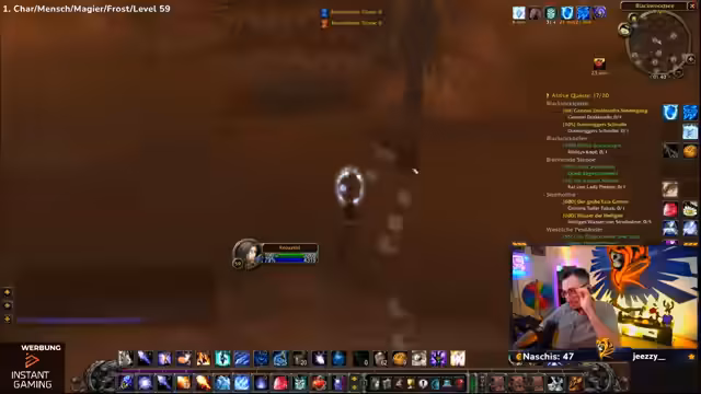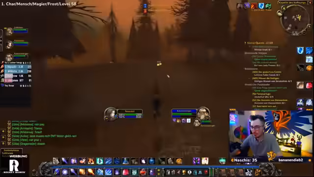 03:49:09Der Streamer richtet seine Talente neu aus, um von den neuen Buffs wie dem Mana-Rubin zu profitieren und seine Zauber wie den Arkane Explosion zu verbessern. Er diskutiert die Vorzüge des neuen Builds, insbesondere den durch 'Arkane Widerstandsfähigkeit' gesteigerten Rüstungswert. Beim Farmen in den Brennenden Steppen stößt er auf starke Gegner aus dem Blackrock-Clan, die ihn zu strategischem Vorgehen zwingen. Währenddessen werden mehrere Questen abgeschlossen, darunter eine bei einem Goblin und die Suche nach Drachen-Brutlingen.