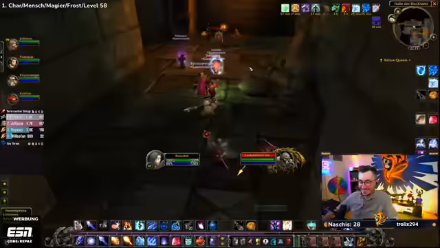 06:45:46Der Fokus verschiebt sich auf die World of Warcraft-Kampagne. Es geht um 'Maxwells Mission', eine Questreihe, die das Töten spezifischer Bosse wie Kriegsmeister Wohne, Hochlord Omok und Oberanführer Wurmtallack beinhaltet. Streamer und Gruppe konzentrieren sich zunächst auf den unteren Teil der Dungeon-Instanz, um die Bosse in diesem Bereich zu besiegen und voranzukommen. Die Gruppe diskutiert über ihre Rollen und Talente im Spiel.