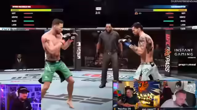 03:36:25Nach dem ersten, sehr kurzen Kampf zwischen Spendi und Reaspers analysiert der Streamer den Verlauf. Spendi dominierte die erste Runde, wurde aber durch einen glücklichen Konter überraschend und vorzeitig Knockout geschlagen. Der Streamer drückt sein Mitleid für Spendi aus, der trotz intensivem Trainings sofort ausschied. Er vergleicht das Format mit dem echten UFC-Sport, in dem Kämpfer ebenfalls nur eine Chance haben. Trotz des frühen Ausstiegs betont er die Fairness und die Spannung, die in dem einzelnen, entscheidenden Fight liegt, und wünscht den Teilnehmern für die kommenden Kämpfe viel Erfolg.