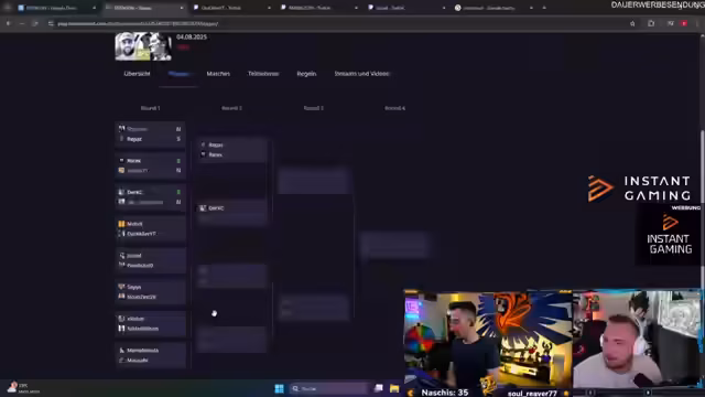03:45:35Beim ersten Kampf zwischen Matze und Steini treten erhebliche technische Probleme auf. Das Spiel startet nicht korrekt und es kommt zu Verzögerungen, was zu mehrmaligen Neustarts führt. Gleichzeitig werden die Paarungen für die nächste Runde bekannt gegeben: Matze kämpft gegen Reapers, und Casey kämpft gegen die Krähe. Trotz der anfänglichen technischen Hürden werden die Kämpfe als besonders angespannt und vielversprechend beworben.