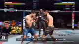 00:37:23Der Streamer vergleicht das Spiel mit dem realen UFC und zeigt Begeisterung für die Kampfkünste wie Sambo und Grappling. Er erwähnt Kämpfer wie Islam Makhachev und dessen beeindruckende Kampfbilanz. Dabei wird die hohe körperliche Anforderung und Ausdauer betont, die im realen und im virtuellen UFC notwendig sind, um lang andauernde Kämpfe zu überstehen.