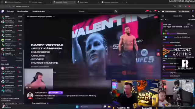 06:37:37Das UFC-Turnier von Danny !ig !rocketgames wird als sehr geil und erfolgreich bewertet. Es wurde aus eigener Tasche finanziert, was Respekt einbringt. Der Streamer hebt die beeindruckende Zahl von über 19.000 Zuschauern hervor, die während des Turniers erreicht wurden. Diese Leistung wird umso höher angesehen, da das zugrundeliegende EA-Spiel als „tot“ gilt und ohne das Turnier nur etwa 50 Zuschauer auf Twitch gehabt hätte. Die Organisation wird als vorbildlich und sehr professionell gelobt.