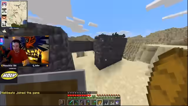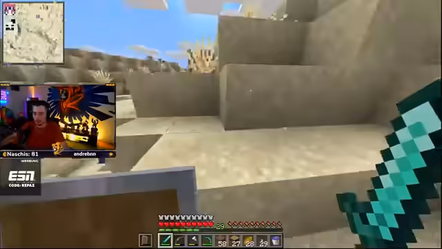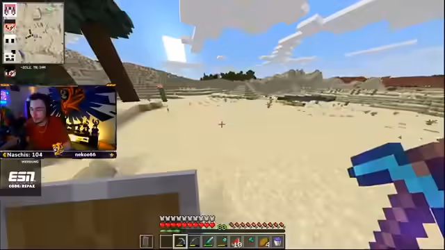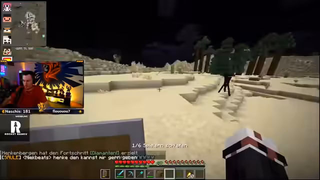 01:38:20Die Gruppe kämpft mit ernsthaften Hungerproblemen in der leeren Wüste. Der Streamer berichtet, dass er Hasen jagt, um überleben zu können, und verzweifelt nach Essen sucht. Ein Problem ist, dass er nach einem Tod im Stream nicht mehr fliegen kann und somit den Spawn nicht verlassen kann. Trotzdem versucht er, einen Weg nach oben zu finden, und findet schließlich einen Teleporter. Dies ist ein kritischer Start, der das gesamte Team beeinträchtigt und dringend eine Lösung erfordert, um nicht im Spawn verhungern zu müssen.