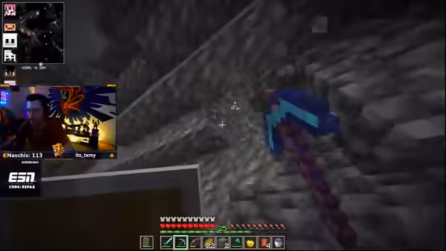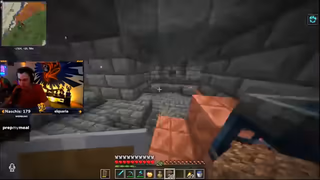 01:24:42Der Mangel an Nahrung wird zum zentralen Problem. Nachdem der Streamer aus Gier nach Diamanten in eine gefährliche Höhle eingestiegen ist und fast sein gesamtes Essen verloren hat, muss er sein Vorhaben abbrechen. Er ist gezwungen, das Gebiet zu verlassen und einen sicheren Spawnpoint zu setzen, da er ohne jegliche Heilungsschätze extrem verwundbar ist.