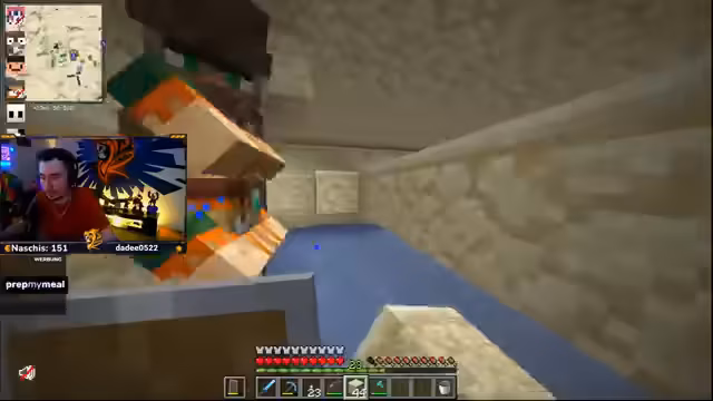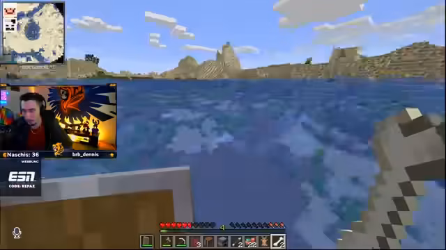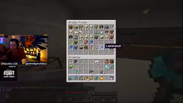 01:19:59Obwohl das Team zunächst Full-Eisen anstrebt, wird der Streamer gierig und sucht auch nach Diamanten. Im Unterwasser gelingt es ihm, einen Haufen Diamanten zu farmen, was ihm aber nur sehr wenig bringt, da er aufgrund des Hungers und fehlender Heil-Items gezwungen ist, das Gebiet sofort zu verlassen. Das Sammeln von Ressourcen stellt sich als sehr riskant heraus.